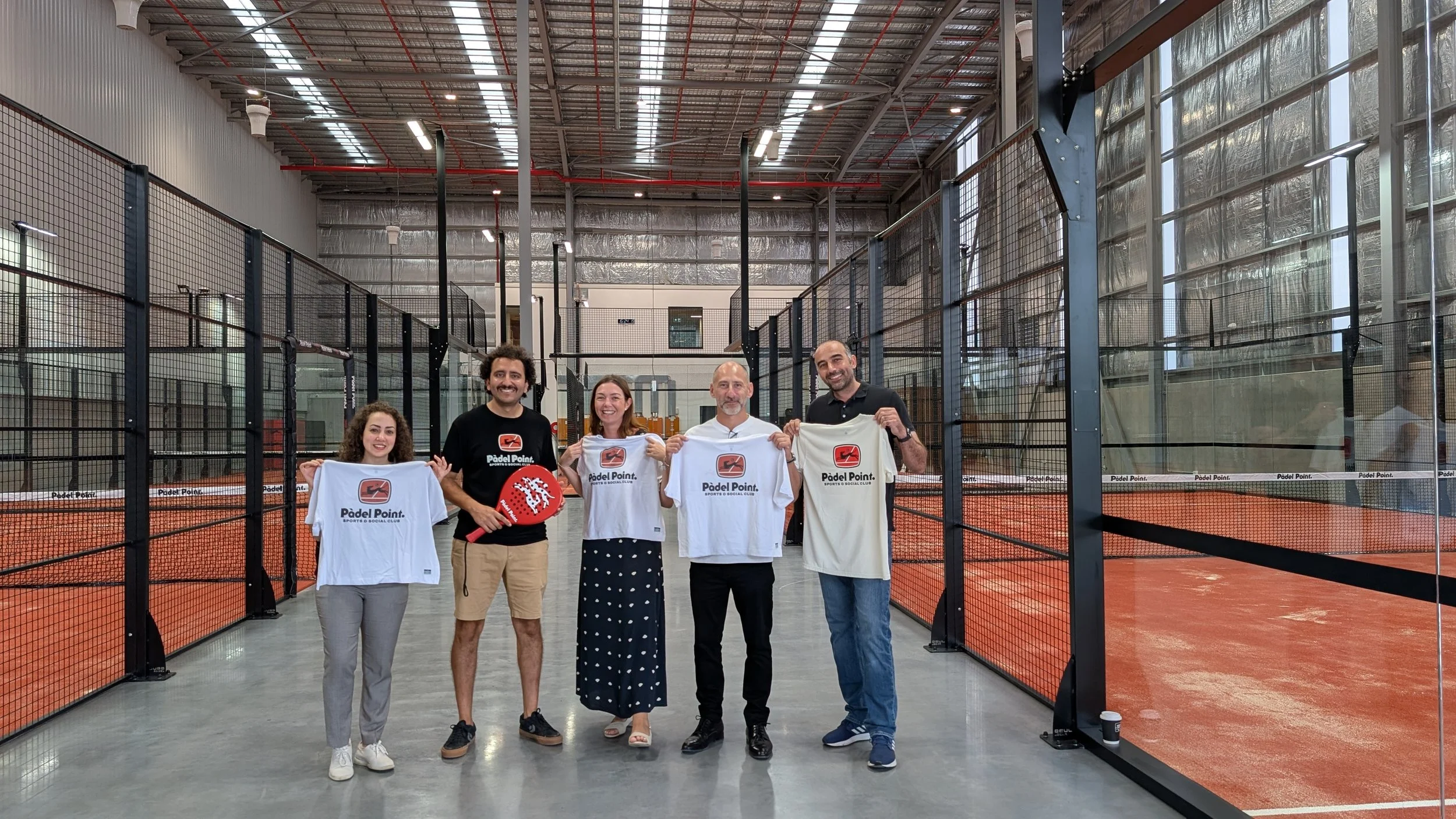 Project handover of completed padel courts project in Bankstown, Sydney. Pictured (L-R): Sepideh Soltani - Senior Project Manager, Farzin Nami - Padel Point Co-Founder, Christina Paterson - Sales & Operations Director, Diego Britos - Project Director, Mike Salehi - Site Manager)