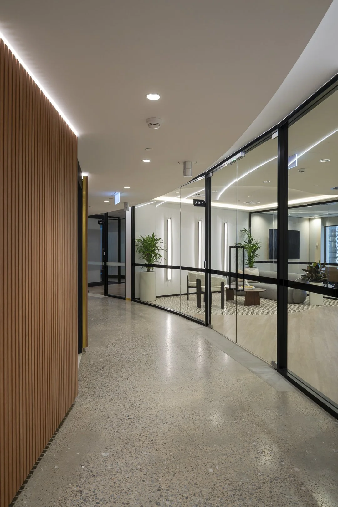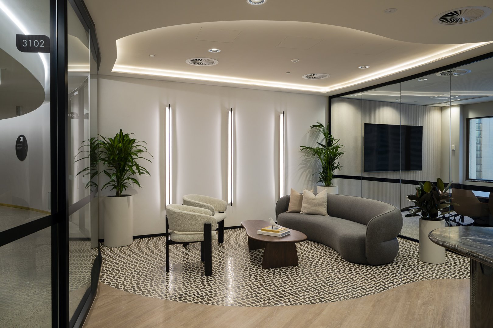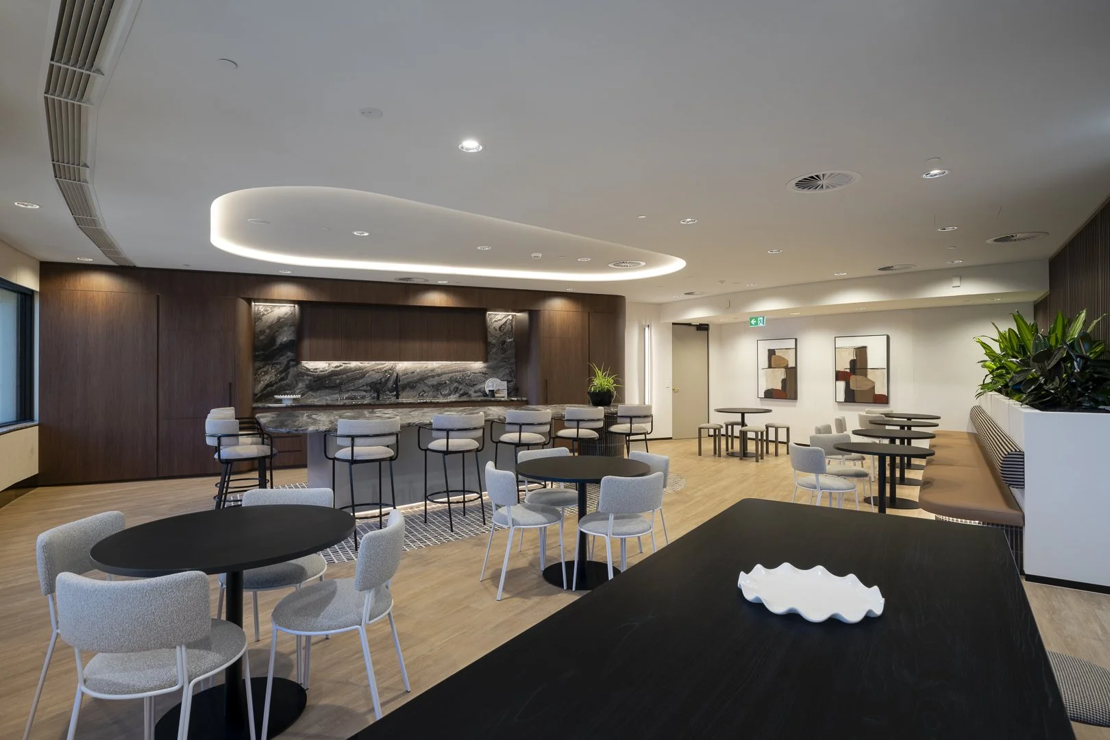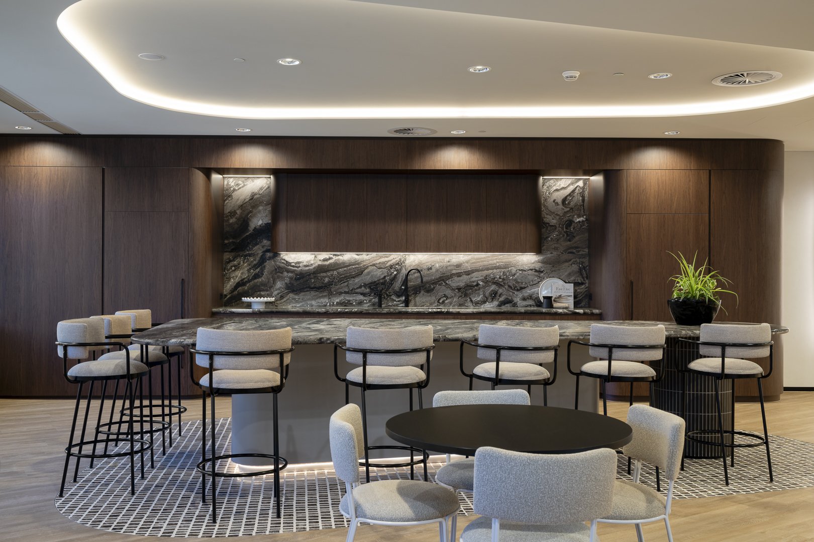 A premium suite in a premium asset. Scope Projects recently handed over a half floor speculative suite and lift lobby refresh, both designed by Gray Puksand and Managed by Solutions Consulting for GPT and Dexus in the Australia Square tower on George Street. The design concept is luxe and moody with dark timbers, textured walls and luxury finishes such as stone mosaic floor tiles and gorgeous hand selected stone slabs for benches and splashbacks. We were commended on a smooth and problem free delivery with appreciation of hard work, dedication and quality of completion in a tight and difficult site.